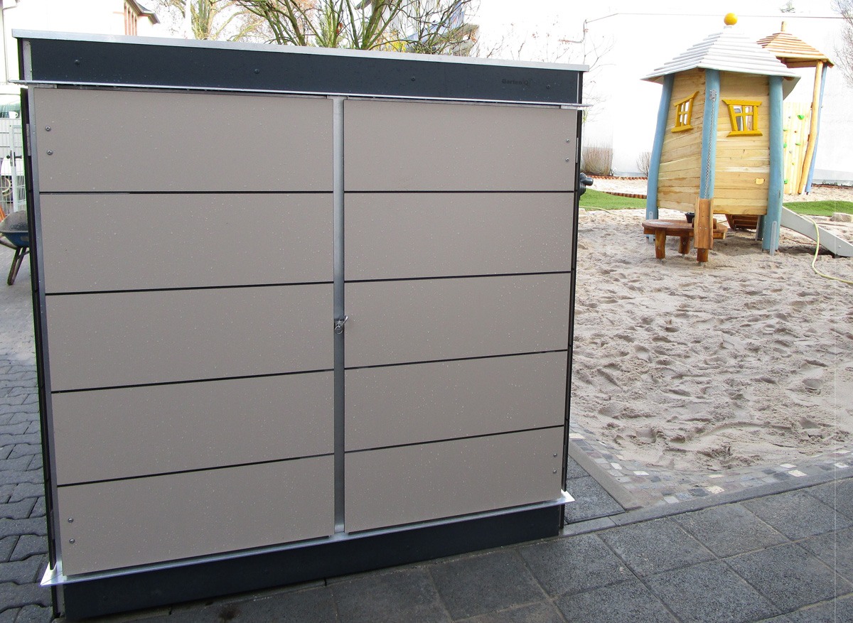 Gerätehäuser, Gartenschränke und Unterstände für Kitas, Kindergärten und Schulen: Kombinieren Sie ganz nach Bedarf und Stellfläche