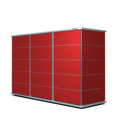 Variantenreich gibt es diesen Designer Gartenschrank mit ein- bis dreiseitigem Zugriff. Auf Wunsch erhalten Sie auch ein Dachbegrünungsmodul.