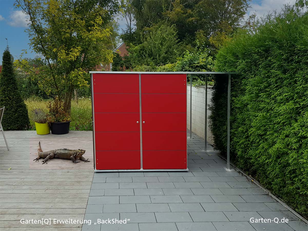 Beim Garten[Q]BackShed handelt es sich um eine Erweiterung Ihres Garten[Q]s. Legen Sie ihn bei der Bestellung mit in Ihren Warenkorb. Er wird zusammen mit Ihrem Garten[Q] geliefert und ist somit versandkostenfrei.